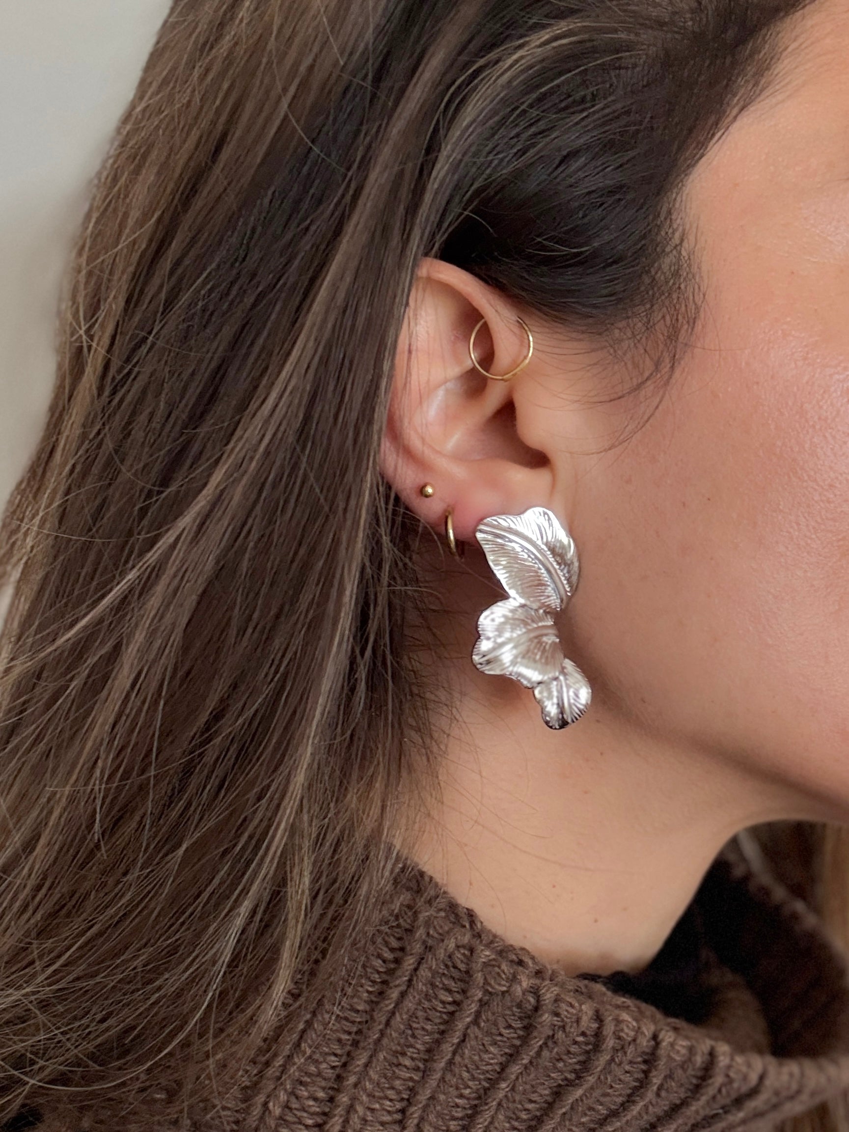 Orecchini argentati in metallo lega di zinco venduti in coppia.