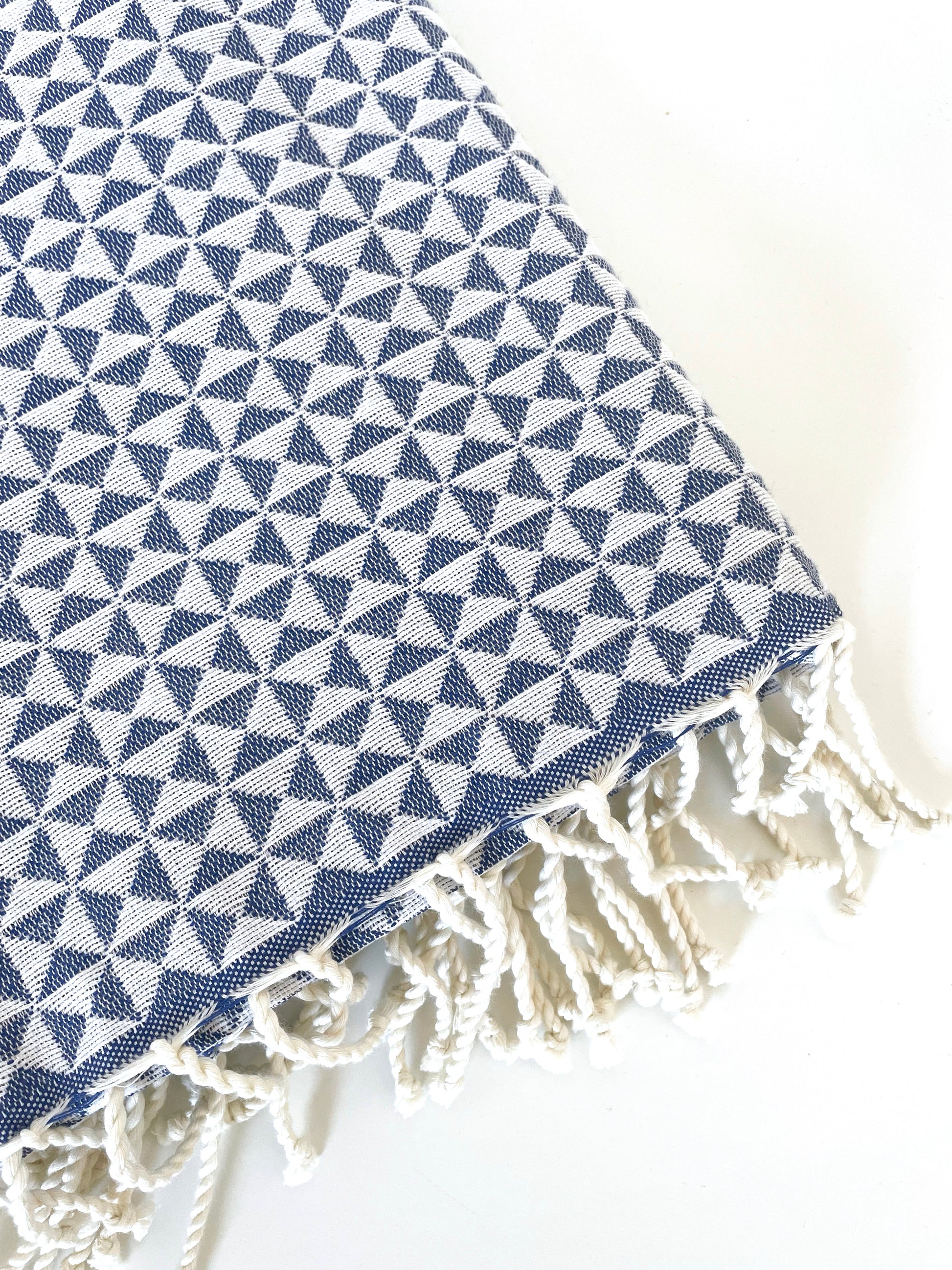 Set mare composto da borsa in juta + beauty + telo mare blu personalizzabili.